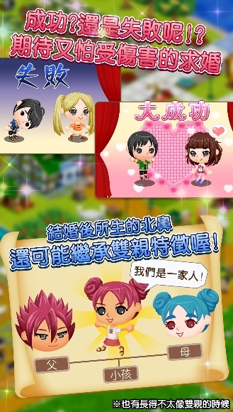 ・透過遊戲的結婚系統,可生出可愛北鼻增加成員,讓工作更有效率,延續家族繁榮!