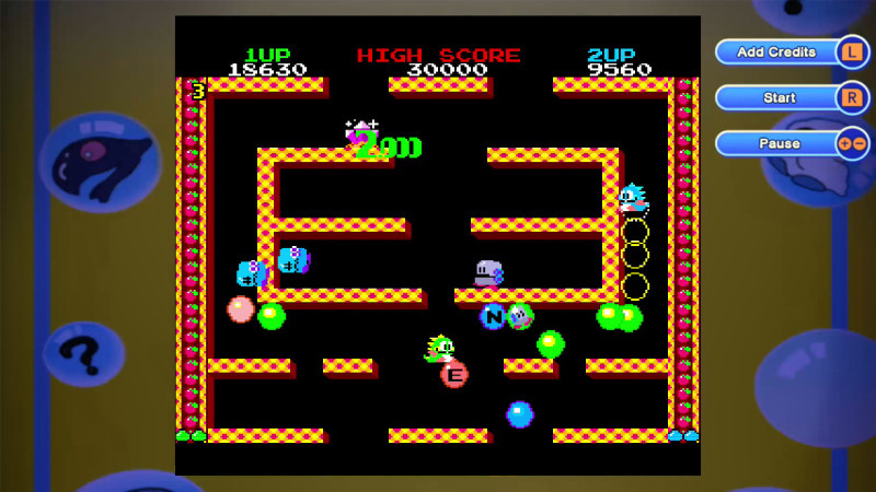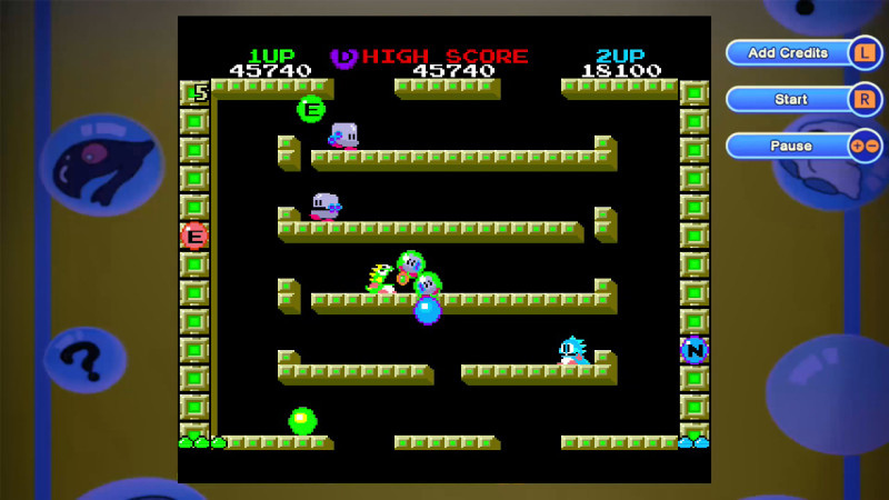本作中一起收錄了1986年上市的原版泡泡龍,且支援 2 人模式和能夠無限制繼續進行。能在最新機器任天堂SWITCH中遊玩擁有100層+a 龐大份量當年的點陣圖泡泡龍。
