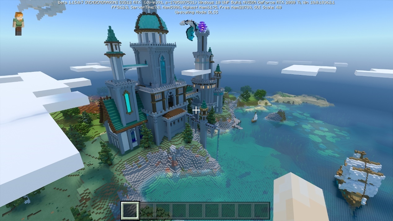 開啟《Minecraft》基岩版,馬上就可以在「市集」找到這次 NVIDIA 與創作者合作推出的六個 RTX 示範作品「Crystal Palace、Imagination Island、Neon District、寺廟和圖騰、水中冒險」以及多關卡展示互動的「色彩、光線和陰影」。