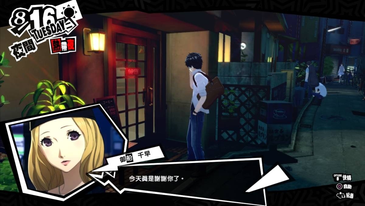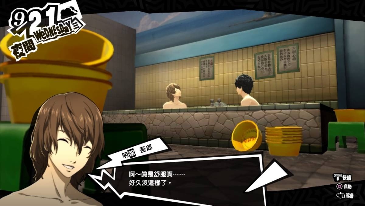 對於在《P5》當中相當欣賞明智吾郎的玩家們來說,只能在劇情主線當中與之短暫的互動,總是讓心裡有許多的遺憾(只好自己腦內補本…)。但是在P5R當中,明智的粉絲們有福了!明智會在下課之後打給你!會約你一起去喝咖啡!還會和主角一起去家附近的公共浴室泡澡!(粉絲歡呼)而且和《P5》本傳一樣,和明智的交情等級,將是影響結局的關鍵之一。