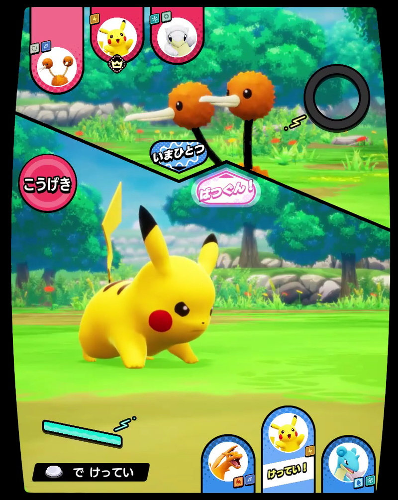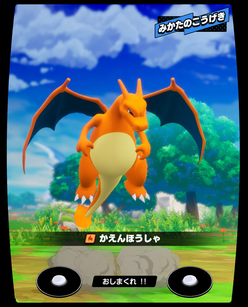 附帶一提,在遊戲中,玩家們可以在機台上的寶可夢區域擺設自己擁有的寶可夢標籤,藉此在遊戲內召喚出這些寶可夢來進行使用。而在戰鬥時,只要對方三隻寶可夢任一隻的寶可夢量表全滿,就會發生可以向對方寶可夢投球來進行捕捉的「Get Chance」捕捉機會,這時候再額外投入 100 日圓,就勢必可以入手三隻中的其中一隻寶可夢。