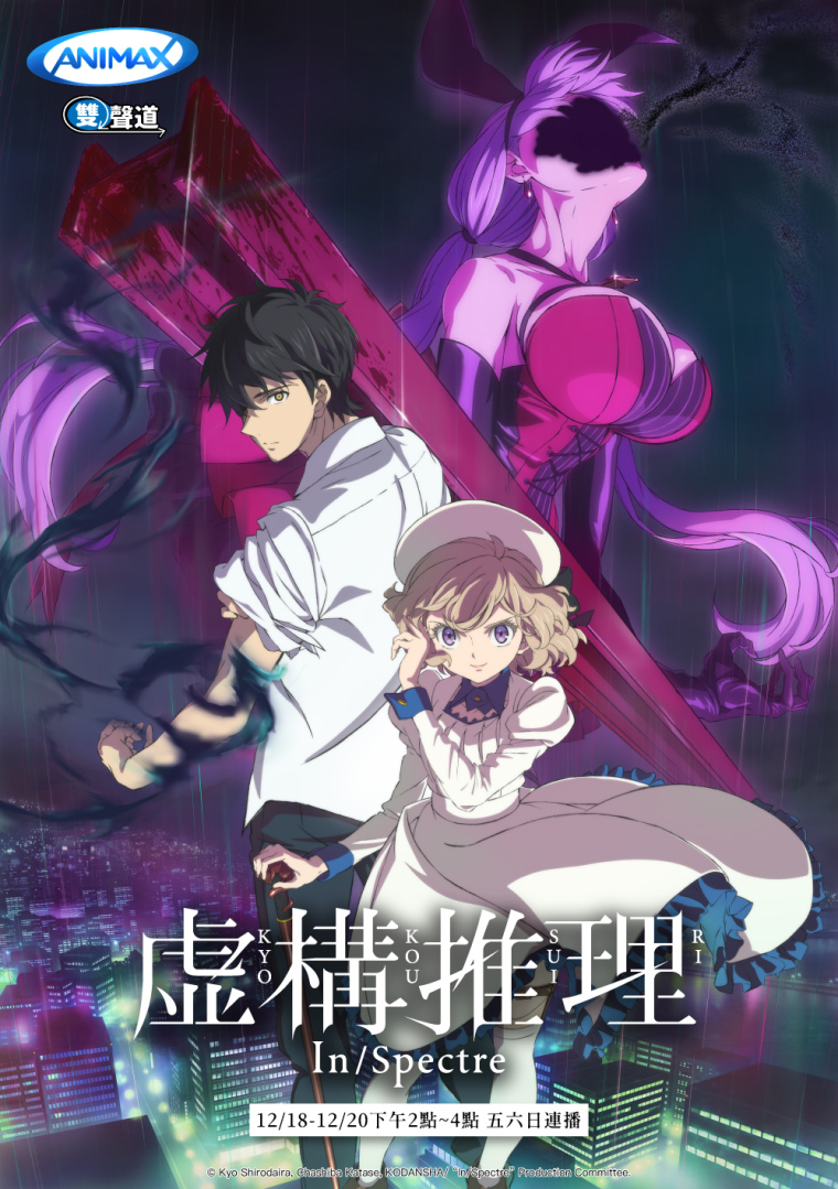 雖然「真相永遠只有一個」,但你所推理出來的卻未必是「真相」!顛覆傳統推理,第 12 回本格推理大獎得獎小說改編漫畫作品《虛構推理》精彩回歸,12/18 (五) -12/20 (日) 下午 2 點 ~ 4 點在Animax 頻道連播三天馬拉松,讓你一次看得過癮。妖怪們的「智慧之神」獨眼獨腿的女孩岩永琴子和擁有不死之身能力的主角櫻川九郎,這對奇妙的搭檔將踏入各式各樣的超自然事件中,兩人聯手用「合理卻虛構的推理」來解決各式各樣的怪異事件。另類的推理方式,打破你對一般推理作品的認知。