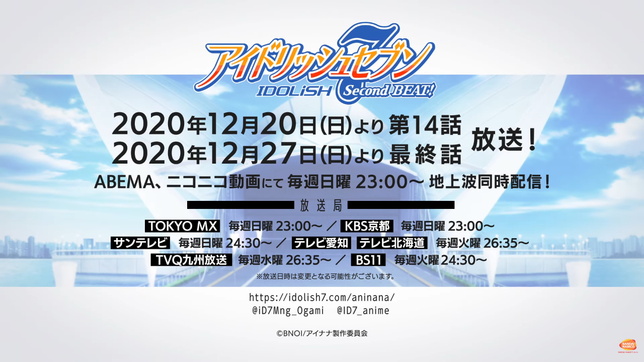 不過在 PV 播放到最後時,粉絲們當然可以意會過來這其實是動畫最後兩集的宣傳廣告,但做得實在是太像真的演唱會廣告了。不少人便感嘆「好想看演唱會」、「三天的話我要開始去找住宿的地方了」、「沒有問題,抽票,都抽!」最後的兩集將分別在 12/20 播出第 14 集、12/27 播出最終回第 15 集,各位粉絲務必見證這場落成演唱會的結果,及偶像們面對苦難和壓力,最後做出的選擇!