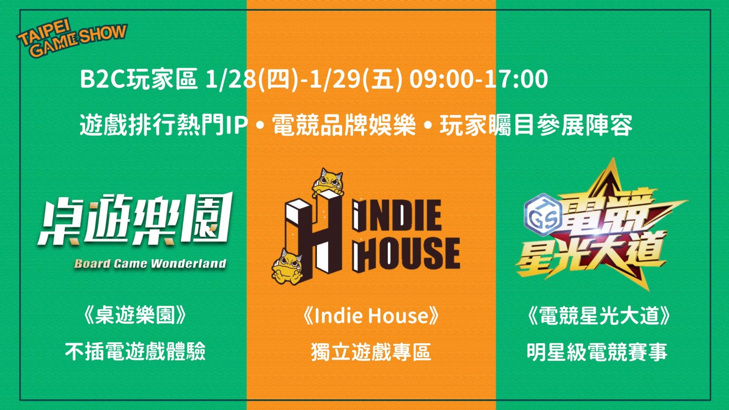 熱門主題展區,像是大小朋友都喜歡的不插電遊戲專區「桌遊樂園」、話題度最高的獨立遊戲專區「Indie House」及呈現明星級賽事規格的「TGS電競星光大道」都將帶給玩家全新的感受。展出期間,「Taipei Game Show ONLINE」線上直播節目將於官方唯一指定影音合作 YouTube 頻道《現在不要NOW》播出,預計內容有遊戲製作人訪談、遊戲試玩與線上互動體驗等精采有趣的節目呈現,詳細節目資訊將於一月份公告。