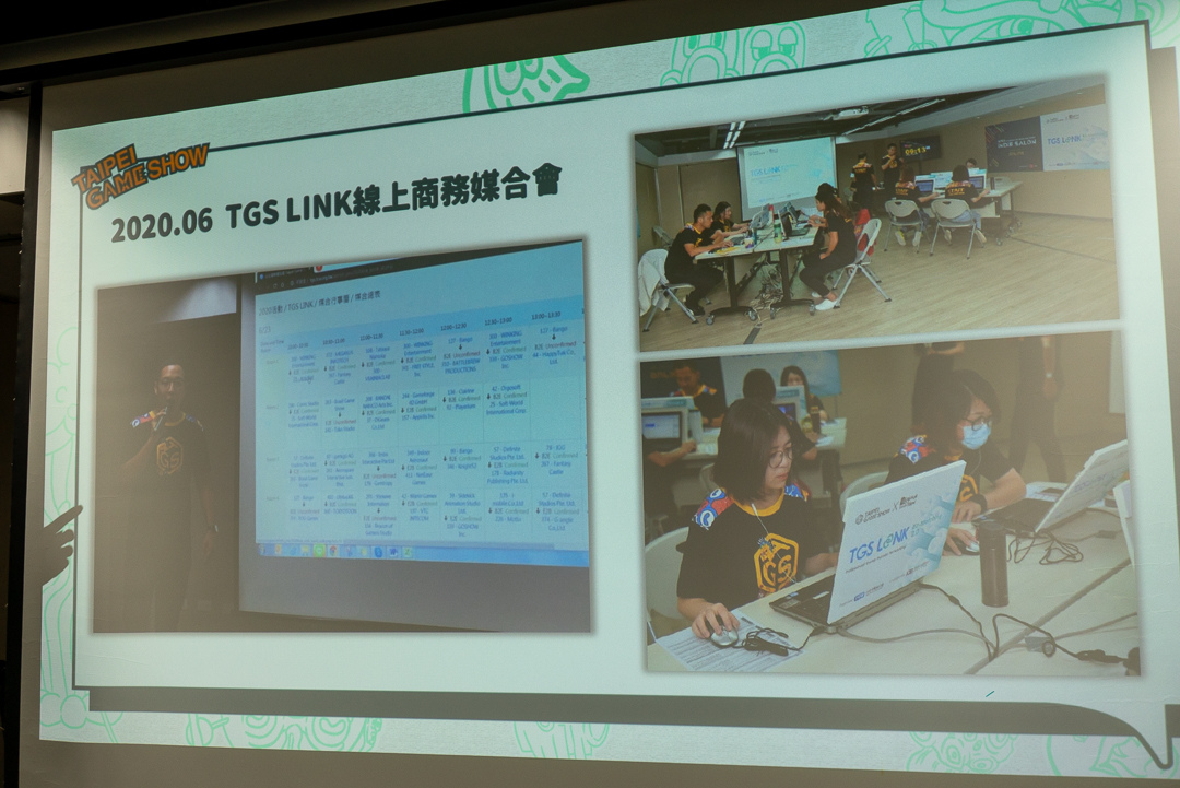 回顧 2020 年因疫情衝擊停辦,已完成的廠商裝潢擺設無法使用、損失慘重。商務媒合則藉由 「TGS LINK」採線上形式促成了超過 170 場線上會談,廠商也參與踴躍,活用此次經驗。因此推出線上商務平台「GAME LINKER」,藉由合作搜尋引擎,提供廠商線上產品展示機會,並將與香港數碼娛樂協會(HKDEA)與韓國釜山信息產業振興院(BIPA)將組團參與線上展示,其中 HKDEA 帶來 15 款各具特色由香港遊戲開發團隊的作品,正積極尋求全球合作商機。