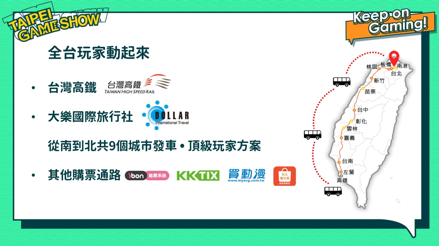 一般民眾 玩家 (B2C) | 玩家區:2021 年 1 月 28 日至 1 月 31 日( / 每日9:00-17:00 展出地點:台北南港展覽館1館4樓 參觀資訊:https://tgs.tca.org.tw/visit_info.php 大紅包CARRY ON:https://tgs.tca.org.tw/red_envelope.php |
