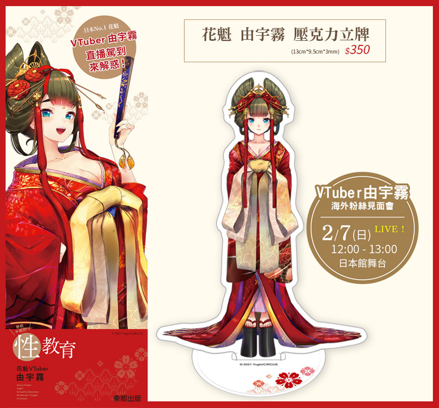 台灣東販於 2021 年動漫節邀請人氣作品《花魁 VTuber 由宇霧 學校不教的性教育》作者「由宇霧」舉辦粉絲見面會。購買「花魁‧由宇霧 壓克力立牌」即可獲得入場資格。為滿足廣大讀者需求,1/13 將搶先在東販官網開放預購,預購前一百名將有機會抽「花魁 VTuber 由宇霧 親簽簽名板」。如錯過預購時間,東販也將保留少量名額至動漫節東販攤位現場販售。活動當天由宇霧將 live 直播與讀者互動。本活動參加者需年滿 18 歲,入場請出示身分證件。現場禁止拍照、攝影、錄音。詳細活動辦法與購買連結請見東販官網及 FB 粉絲專頁。