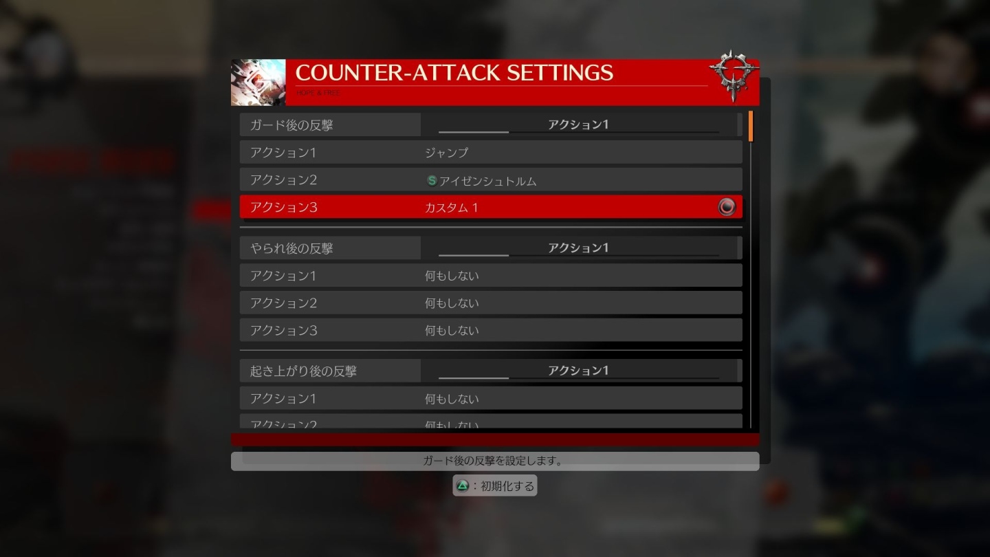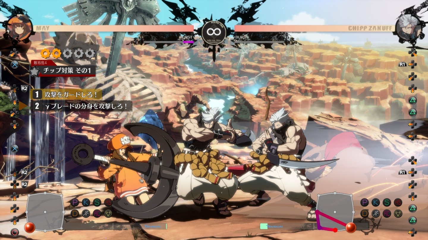 這是可以讓玩家們自由進行各種設定,藉此進行練習熟悉角色操作的模式。除了一般的操作設定外,也可以針對格擋後的反擊、被打倒後或是被打飛後的反擊等各種設定進行選擇操作。