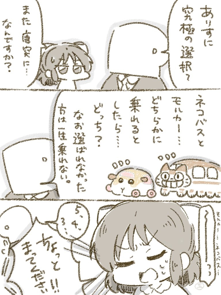 此外還有網友發出提問,貓巴士和天竺鼠車車如果一輩子只能搭乘一次,無法都選的前提下,你會選擇哪一個?這真的是終極拷問啊...真的不能兩個都搭搭看嗎?