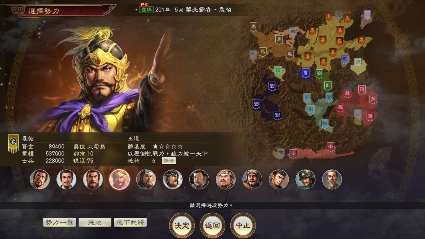 劇本「華北霸者‧袁紹」是袁紹在關渡之戰中大破曹操,並將河北及中原的一部份納 入麾下的 201 年 5 月的假想劇本。