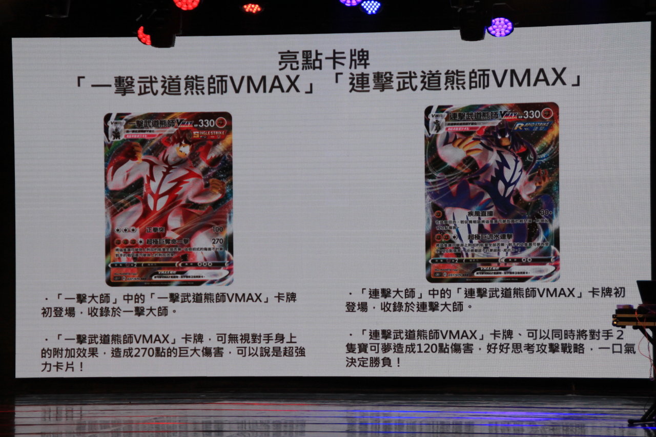 《寶可夢集換式卡牌遊戲》自 2019 年 10 月在台灣香港推出繁中版後,除了有「太陽&月亮」系列的「眾星雲集組合篇/美夢成真組合篇/雙倍爆擊/傳說交鋒」外,還有「劍&盾」系列的「劍&盾/無極力量/驚天福特攻擊/閃色明星V高級擴充包」;如今,「劍&盾」系列最新擴充包「一擊大師/連擊大師」也將於 1 月 29 日正式推出,夾帶最新「一擊/連擊」系統以及餘單機版《劍.盾》擴充包「鎧之孤島」登場的「一擊武道熊師VMAX/連擊武道熊師VMAX」等強力可夢登場,勢必為玩家們的牌組帶來全新的衝擊與組合(「一擊大師/連擊大師」 開箱請看此)!