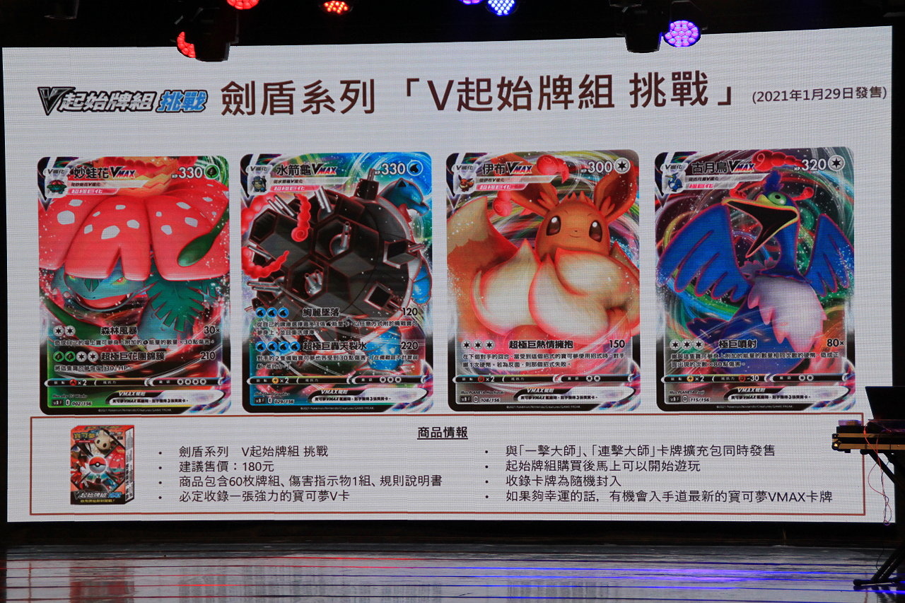 兒為了讓新手玩家們能夠快速上手這次的「一擊大師/連擊大師」,官方也將於 1 月 29 日同步推出建議售價 180 元台幣的「V起始牌組 挑戰」讓玩家們入手。在這個起始牌組中,除了收錄 60 張已經隨機搭配好的牌組讓玩家們可以直接拿來進行對戰外,在每個組合裡還必定會收錄一張強力的寶可夢V卡,如果運氣好,還有機會入手最新的寶可夢 VMAX 卡牌唷!