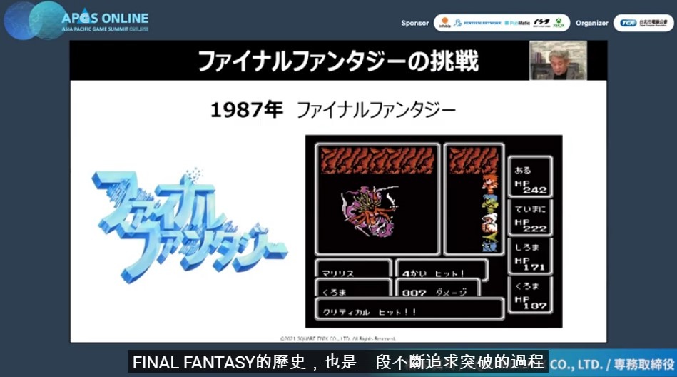 隨著台北電玩展自今天起正式開幕,Square Enix 專務取締役兼《FF》品牌總監「橋本真司」也受邀參與這次的台北電玩展亞太遊戲高峰會,為玩家們帶來《Final Fantasy》系列 30 周年歷史回顧,讓玩家們能夠更加瞭解熟悉這款人氣系列 RPG 的獨特魅力。