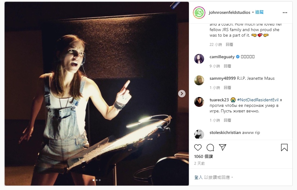 演員珍妮特摩絲(Jeanette Maus)在與結腸癌對抗八個月後去世,享年 39 歲,曾演出《舊日惡夢》、《忽然搭上你家姊》等電影,最近則是擔任《惡靈古堡》系列最新作《惡靈古堡8 :村莊》當中的「女巫」, 消息曝光後,CAPCOM 開發團隊也發表哀悼之意。