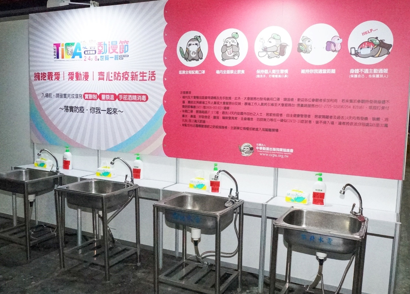 2021 台北國際動漫節明天即將開展,在各家廠商佈展完成後,基地也前往一探究竟!今年因疫情關係,動漫節現場設置洗手台,希望粉絲及觀展民眾都能夠隨時消毒自己雙手、做好個人衛生;排隊區也佔據展場將近 2/3,為了讓民眾都能保持排隊時的社交距離,這次可說是拉好拉滿;參展廠商雖然少了東立、尖端、角川、群英社 (MY-CARTOON)、偶像星願,但其他攤位依舊是拿出百分百的準備,將貨架放滿最新商品,一圓粉絲們的購買慾。