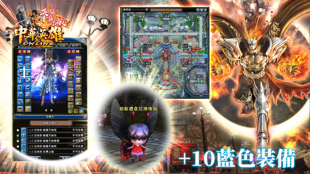 《中華英雄Online英雄無敵》與時俱進,為滿足現代玩家遊玩需求,也大幅調整升級系統及職業平衡,並推出超值福利活動,只要達成指定階段任務,除了可以獲得豐富道具資源之外,還能在等級0、40、70領取全套+10的完美藍色裝備,幫助玩家輕鬆練功,成長速度突飛猛進!再搭配創角活動贈送的一系列獎勵,玩家無論是否課金,都能盡情享受暢快的遊戲體驗。