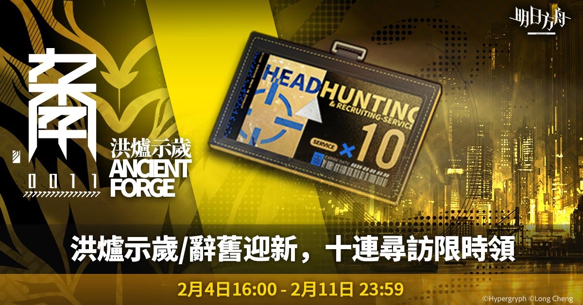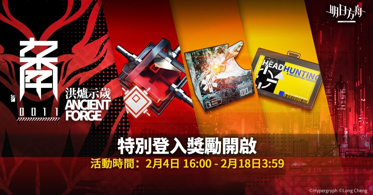 慶祝「洪爐示歲」活動開啟,活動期間玩家登入遊戲,即可領取「十連尋訪憑證」。同時在 2/4(四)16:00~2/18(四)3:59 期間,每日登入遊戲還可領取一份神祕獎勵,總計 14 份。