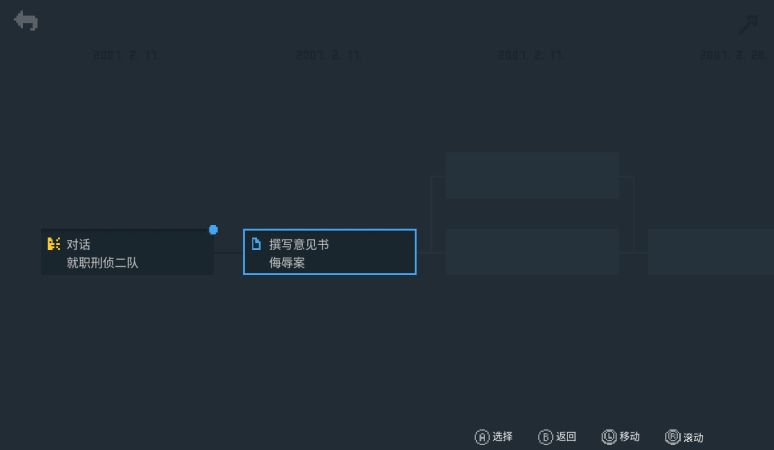 《律法之地》撰寫調查卷宗的遊戲。主人公作為警察調查組的領導,閱讀搜查員們的報告書和陳述書等,來決定是否撰寫起訴嫌疑人的意見書。