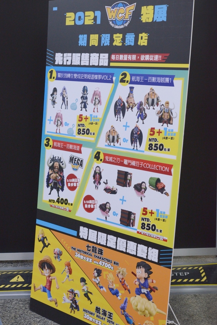現場目前也有販售商品套組,讓粉絲們在觀展之餘,動心了也可以直接帶回一整套。不過在今早媒體拍攝時間尚未結束,就已經看到《鬼滅之刃》系列沒剩幾組,瘋狂補貨中......這種狂熱實在有點嚇人!不僅有最新先行販售商品套組,還有消費滿額好禮,想要及早入手心愛收藏公仔的你們,趁著展期才剛開始,趕快到現場走一遭吧!