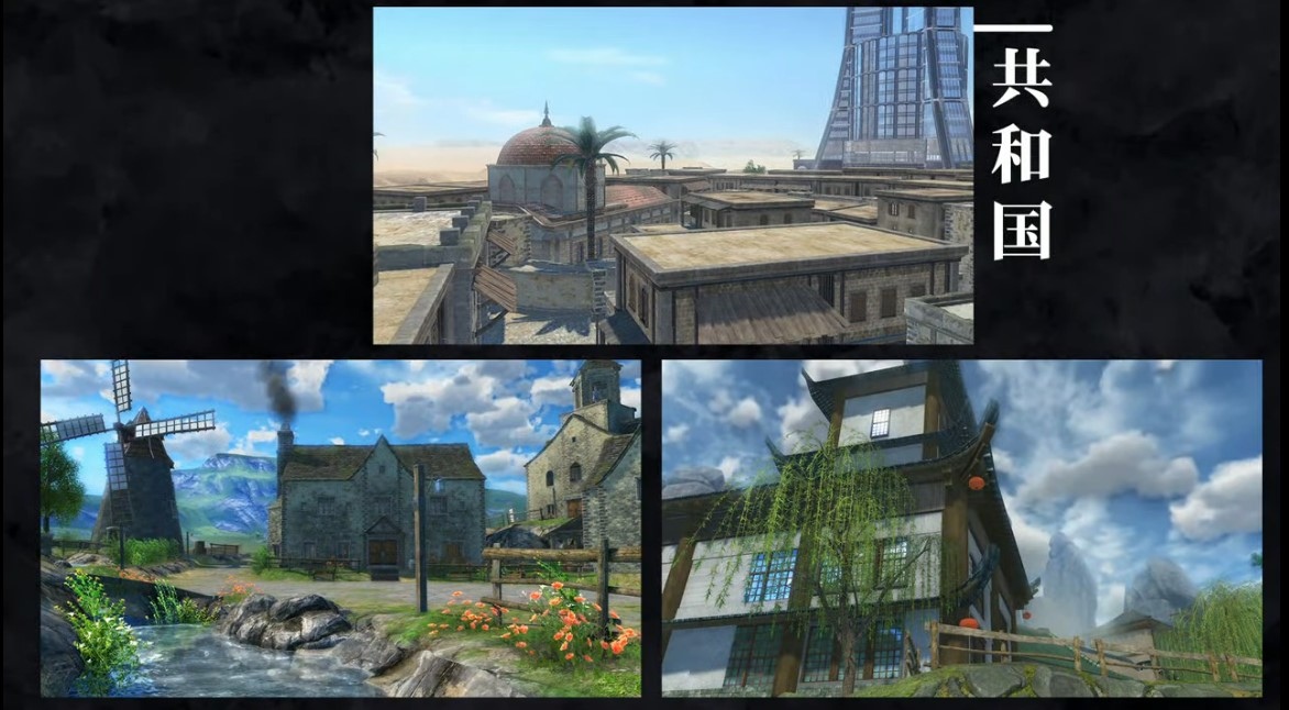 另外,官方也藉著這次機會,公開遊戲內收錄舞台關卡的最新畫面。除了之前公開的共和國首都外,還有充滿東方風味的東方人街、主角邦恩所經營的亞克萊特解決事務所、因為經濟發展而沒落的舊市街,以及共和國各式各樣的場景畫面讓玩家們搶先確認。