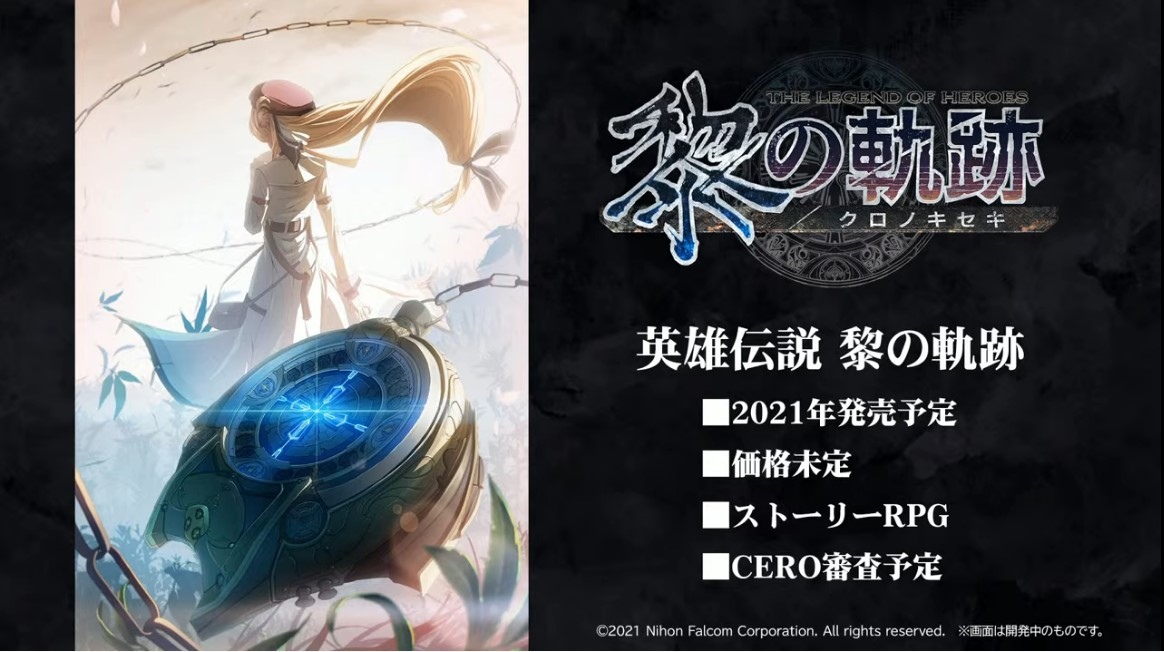 在這之後,就是玩家們最期待,預定 2021 年推出的《黎之軌跡》的最新情報發表。在這次《黎軌》公開的情報方面,除了有之前隨官網啟用公開的男女主角等四名主要登場人物畫面介紹外,也預告還有四名主要角色,將於日後另行公開發表。