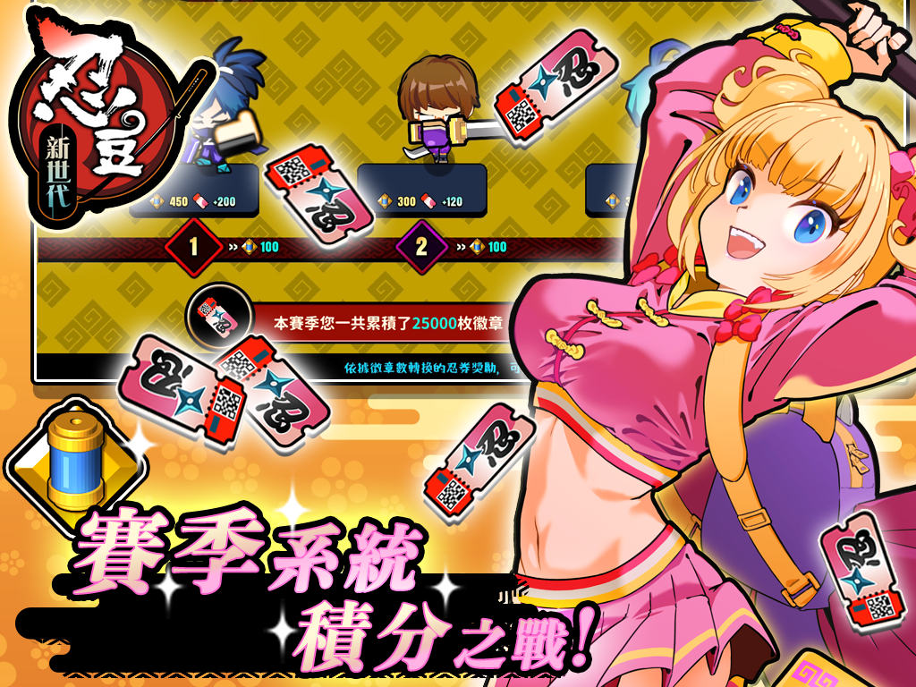 每個賽季兩周結算一次,系統會針對角色的徽章數發放獎勵「忍劵」,並重置。「忍劵」可在未來開放的專屬商店中購買時裝、貼圖和強化素材,培訓師們為了美美的時裝,努力在每一次的賽季中上S組吧!