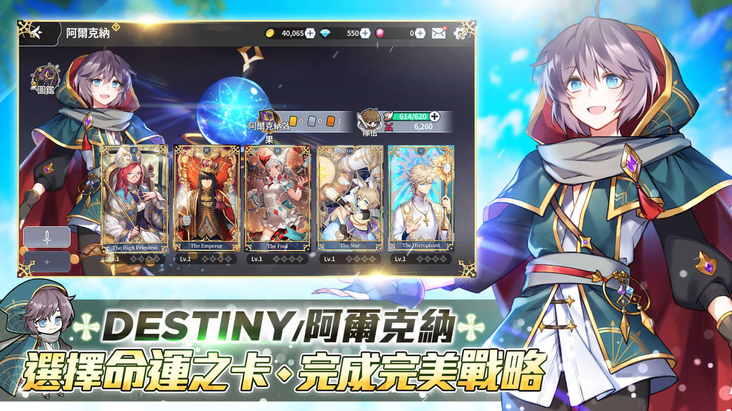 玩家在阿爾克納牌組中可放置五張卡,由於每張卡都有不同的 Buff 效果,可任意擬定配置屬於自己的牌組,來提升每位英雄戰力及獲得特殊效果,因此每張卡片都是相當重要。舉例來說,想要隊伍中的英雄能增加暴擊率或增加火屬性英雄出場機會…等,就需配置對應的阿爾克納卡,來達到百分之百的完美戰略。
