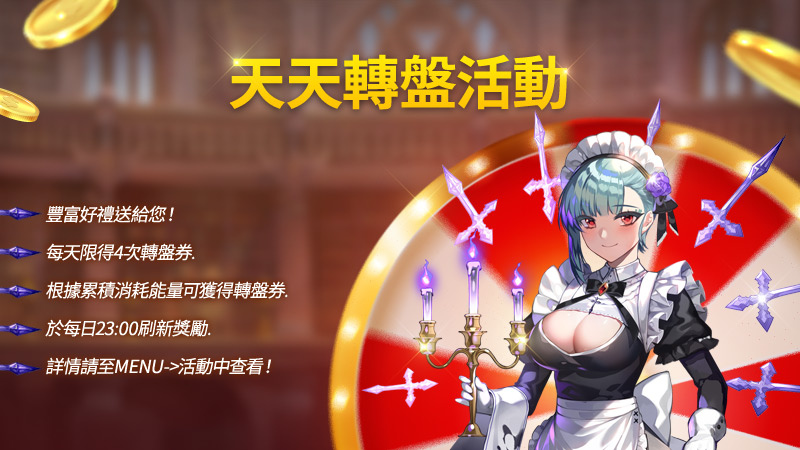 玩家只要消耗能量就可獲得轉盤券,再使用轉盤券來轉出特殊大禮。
