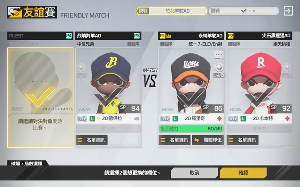 玩家在友誼賽系統中,可自由切換觀賽者、隊戰者角色。