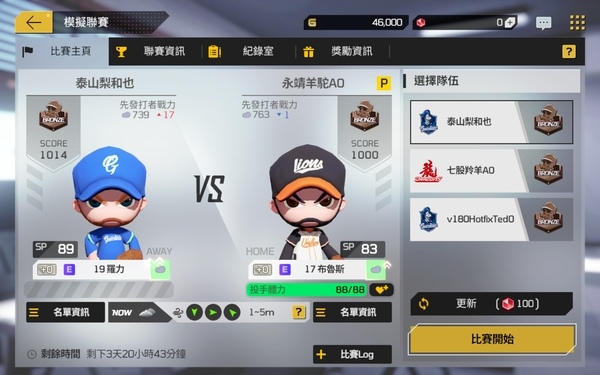 模擬聯賽改版,玩家可更方便選擇對戰選手。