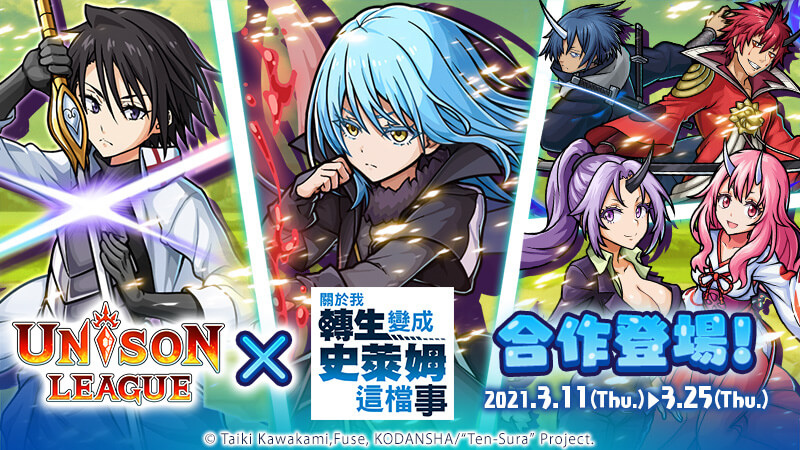 戰鬥 RPG 手遊 《UNISON LEAGUE》自 3 月 11 日(四)起,與現正熱映中的人氣電視動畫《關於我轉生變成史萊姆這檔事》展開了合作活動!活動預定至 3 月 25 日(四)13:59 截止。