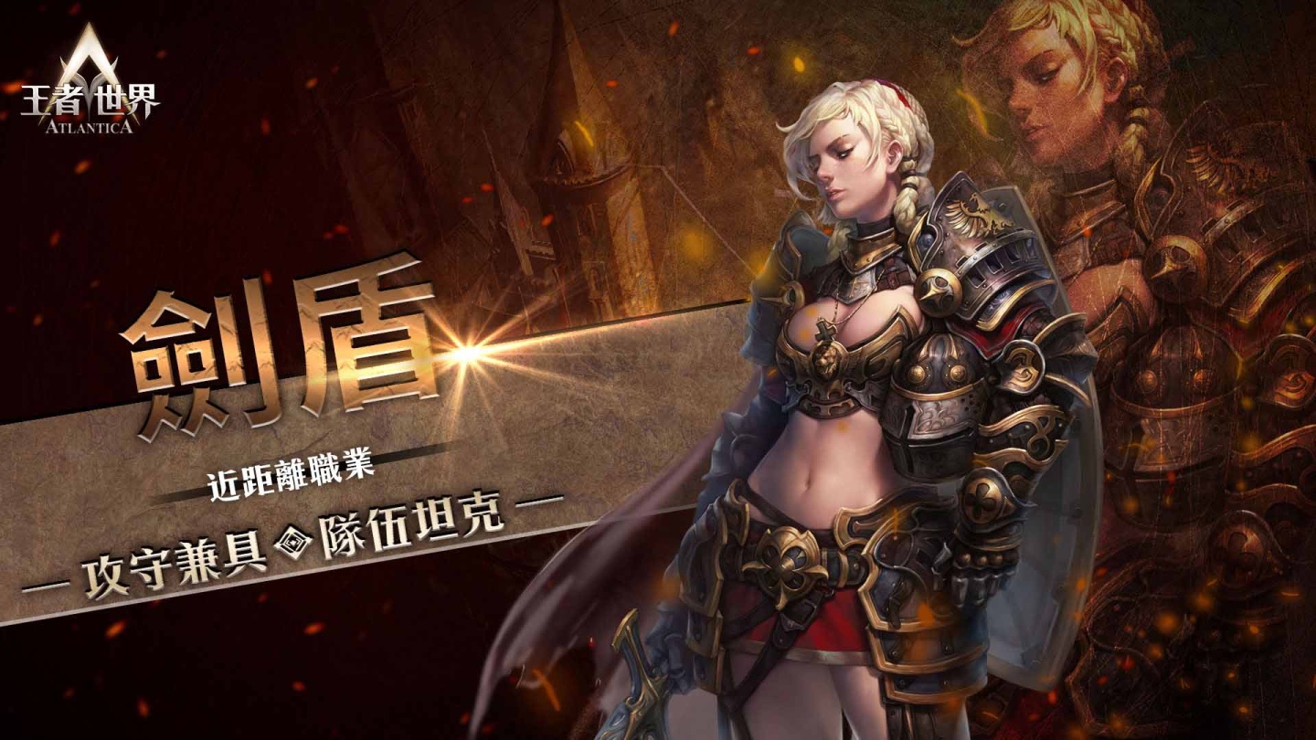裝備盾牌與單手劍,擁有高防禦與不錯攻擊能力的劍盾,在作戰中多數被安排在前排位置,雖攻擊距離較短,也僅可攻擊單一敵人,但出色的身體素質與防禦係數,是作為坦克的不二人選。職業特性還可提供BUFF光環,增加全隊的防禦力,是隊伍中不可或缺的重要組成之一!不僅如此,使用技能攻擊時,劍盾還可施放「火焰之劍」,在武器上環繞火焰之氣韻,對敵人造成巨大的傷害。