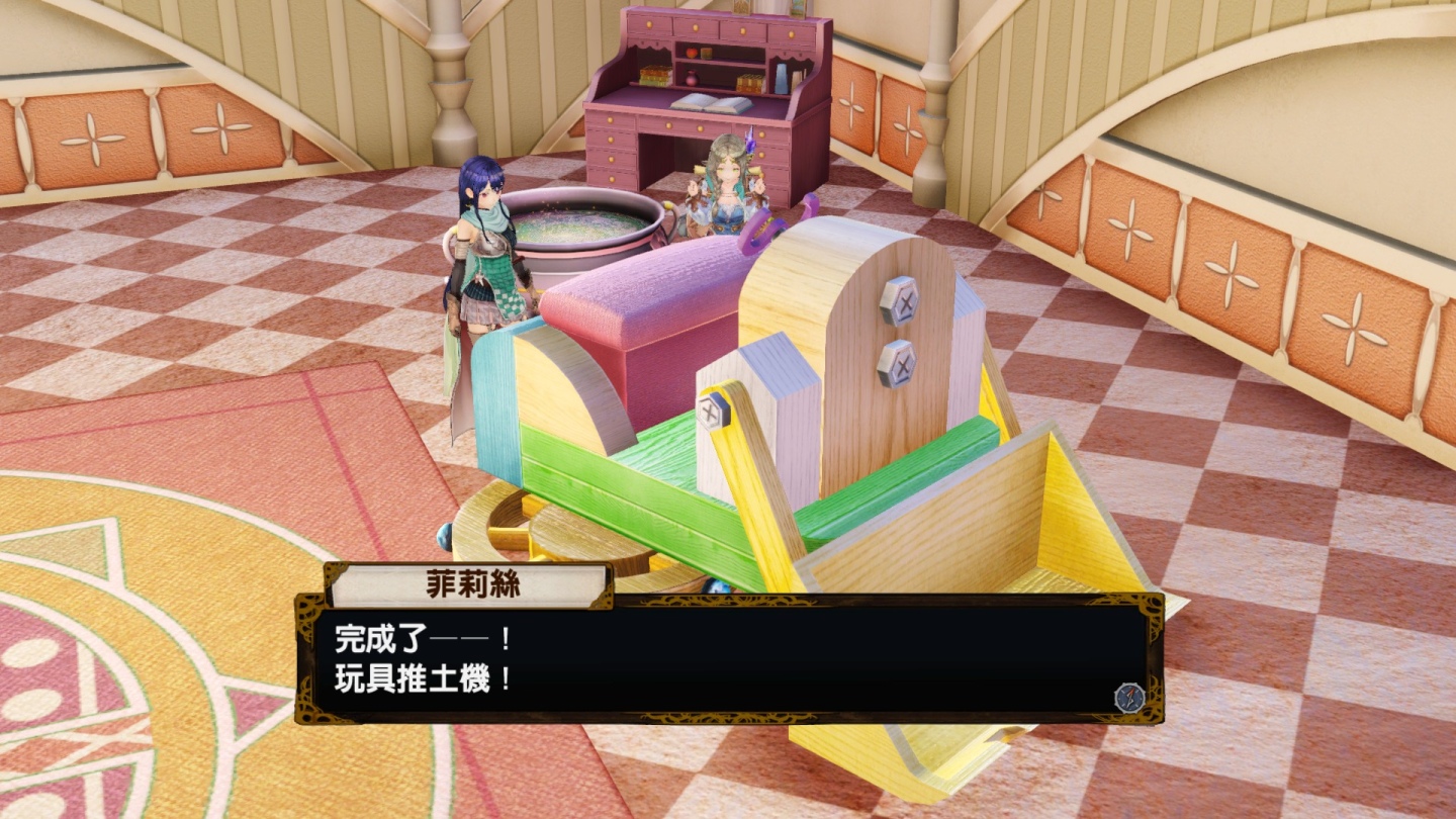 菲莉絲得意地表示這是能一網打盡所有材料,令鍊金術士垂涎的交通工具。而莉亞妮開始擔心附近的材料是否會被採光殆盡……