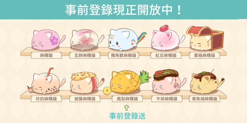 現在已開放事前登錄,首波限時下載就能拿到好吃的「鳳梨麻糬貓」!