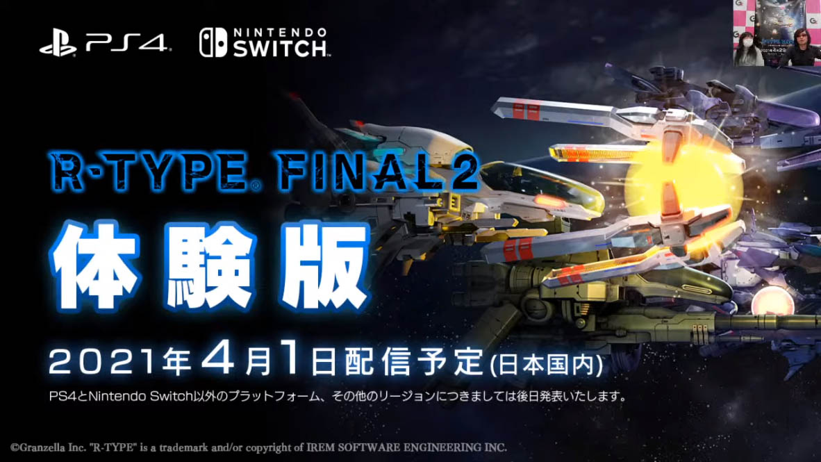 Granzella 開發,預定 2021 年 4 月 29 日在 PS4/Xbox One/Xbox Series X|S/Nintendo Switch/PC Steam 等平台發售,台灣則是預定同步推出 PS4/Switch 繁中版本的《R-Type Final 2》,將自 4 月 1 日起在日本推出 PS4/Switch 版的免費體驗版讓玩家們先行下載試玩。