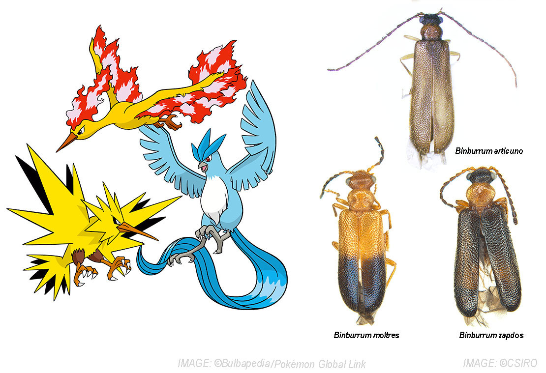 提到《寶可夢》系列初代三神鳥「Moltres 火焰鳥/Articuno 急凍鳥/Zapdos 閃電鳥」,想必粉絲們一定都非常熟悉。如今,就有 ENMU 東新墨西哥大學的昆蟲學教授「Darren Pollock」博士,與 ANU 澳大利亞國立大學博士生「Yun Hsiao((蕭昀)」,將他們新發現的三種昆蟲,以三神鳥之名分別取名為「Binburrum articuno/Binburrum moltres/Binburrum zapdos」。