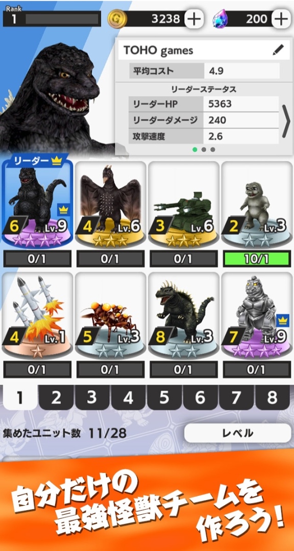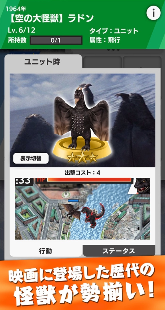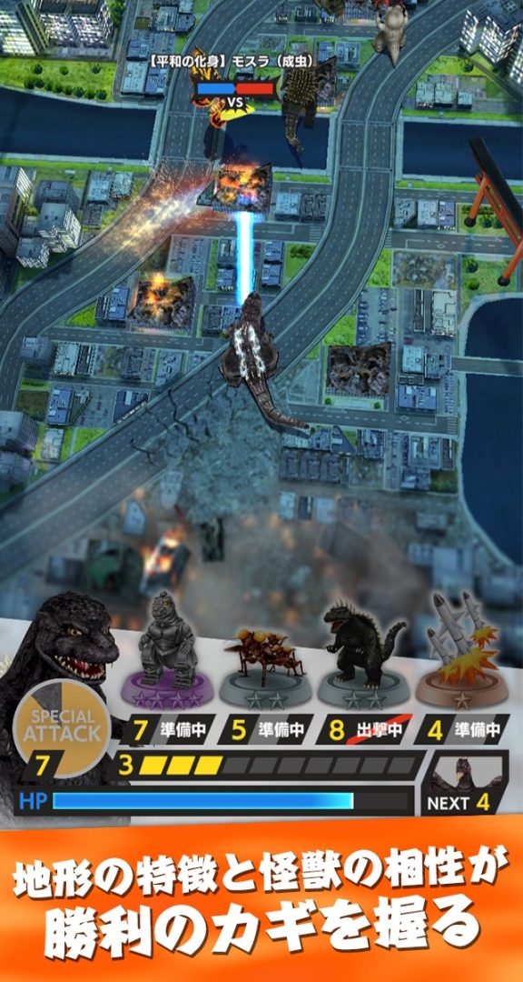 這次公開的《Godzilla Battle Line 哥吉拉戰線》,為一款網羅《哥吉拉》系列人氣怪獸與兵器登場(如 1989 年版的哥吉拉、1991 年版的王者基多拉、1964 年版的拉頓、1992 年版的摩斯拉等等),讓玩家們搭組自己最強怪獸隊伍,與全世界的玩家們在三分鐘的限制時間內展開最刺激即時對戰的即時對戰遊戲。