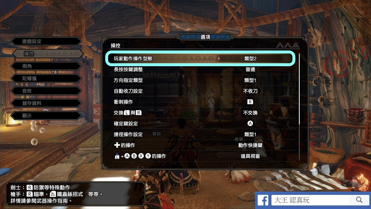 如果你是槍手的話,也可以在選項裡面的操控分頁做調整,選玩家動作操作型態就可以做改動