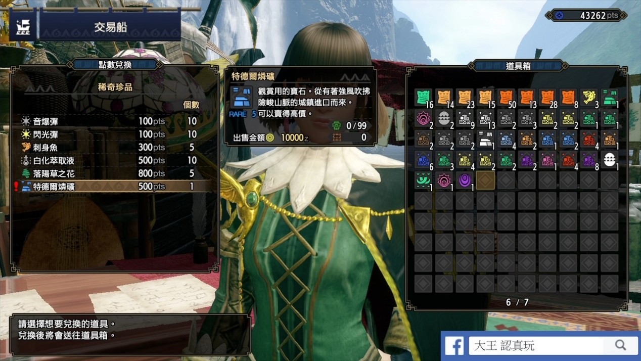 同樣是在隨從廣場,找交易商人隆蒂尼,選點數兌換分頁裡的珍稀奇品,偶爾會有這種可以賣得高價的物品,安慰獎是五十點數換一千現金,如果開到大獎就是像圖片這樣,你看,五百點數直接換一萬現金,潮爽DER