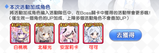 活動期間,白桃桃、北極光、安吉莉卡、可可獲取概率提升 25%;想要獲取全新少女的指揮官們,千萬不要錯過了哦!