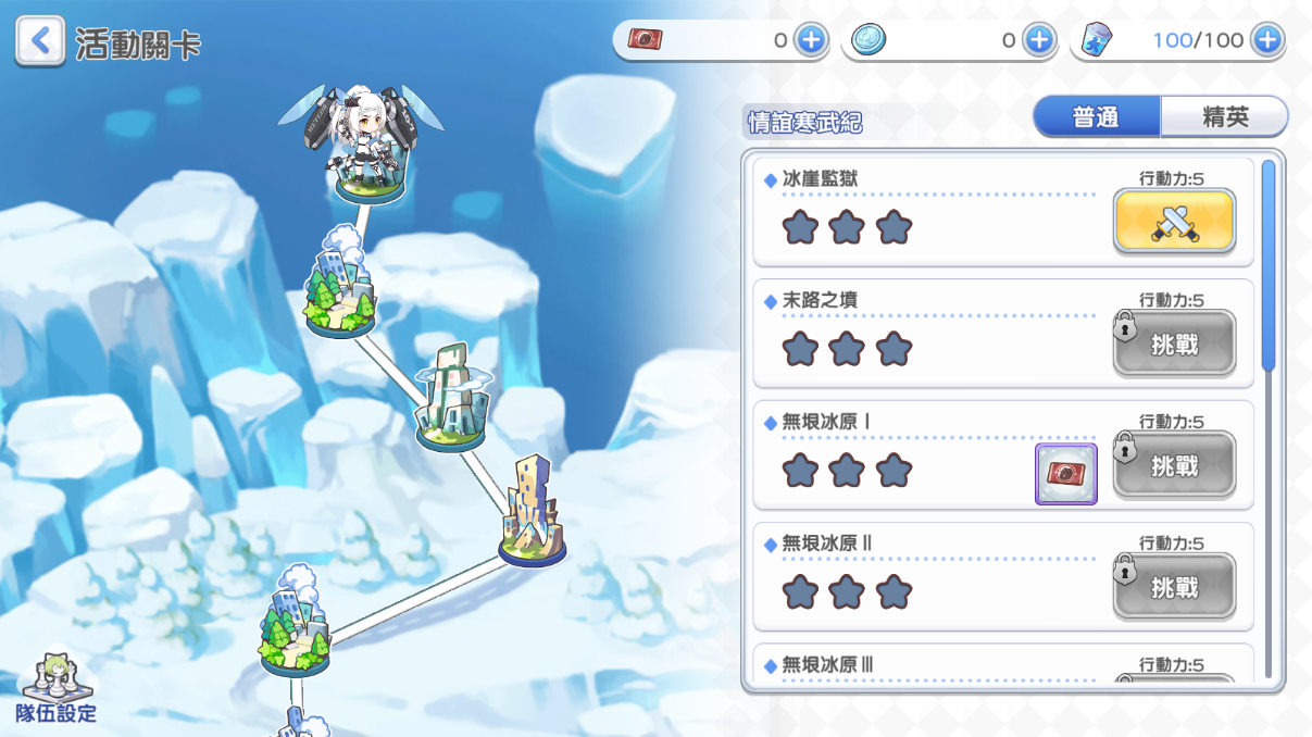 極寒之地危險萬分,前方的雪花峽谷與沉寂冰原,需要有勇氣的指揮官們帶領少女組成強力陣容,完成前方的挑戰。活動期間,限時關卡玩法開啟,通關極寒冰原完成挑戰,即可獲得活動貨幣,活動貨幣可以前往限時活動商店中兌換稀有資源道具。