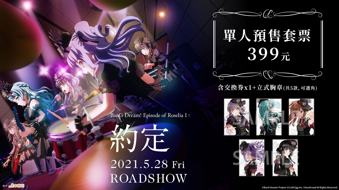 本日(4/9)釋出歌迷與粉絲們最期待的預售消息,電影預售票以樂團 5 人登台的黑紫色系舞台團服為主,每組均附一入極具收藏價值的日本空運角色款立式胸章與收藏票,粉絲還可以自由選角,無論是喜愛哪一款角色,這次都能選定最愛的她搶先珍藏,並於 4/16 於買動漫網站搶先開賣,現在就立刻跟邦邦同好一起分享本訊,鎖定不可錯過的珍藏機會!