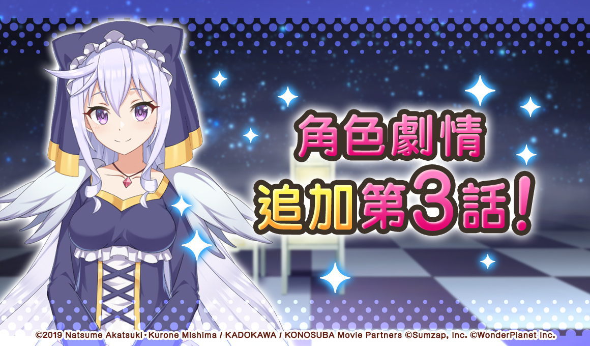 改編自人氣動畫《為美好的世界獻上祝福!》首款手機遊戲《為美好的世界獻上祝福!Fantastic Days》(簡稱《美好世界FD》),將於 4 月 13 日(二)更新角色劇情第 3 話,以及舉辦新活動及轉蛋。
