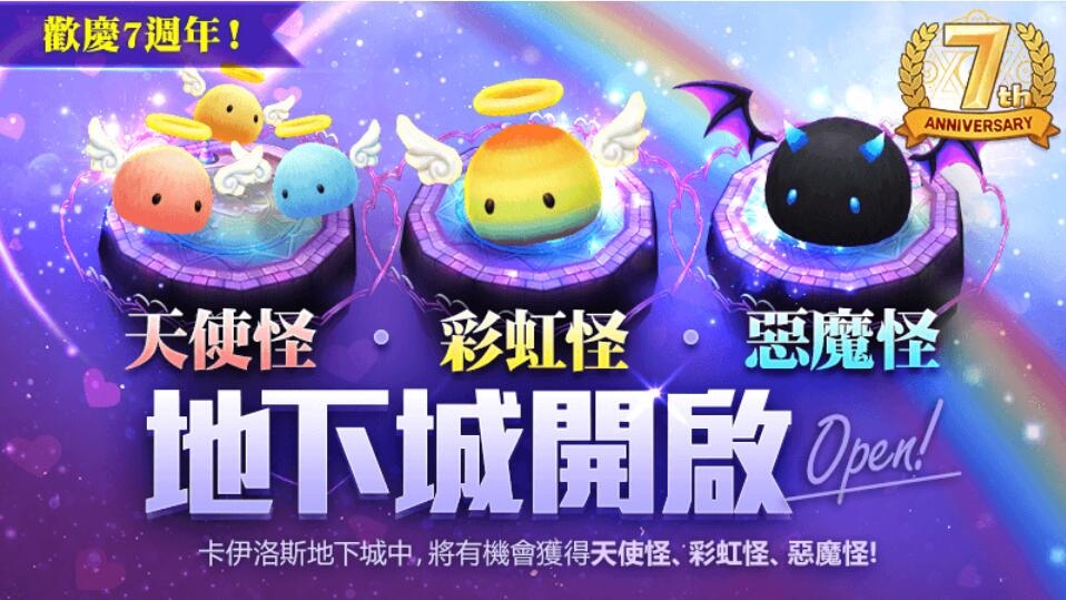 《魔靈召喚》的超人氣強化材料在這次 7 週年慶中再次強勢回歸!只要挑戰地下城即可輕輕鬆鬆免費獲得稀有強化材料「天使怪」、「彩虹怪」以及「惡魔怪」,大幅強化魔靈的時刻就是現在!