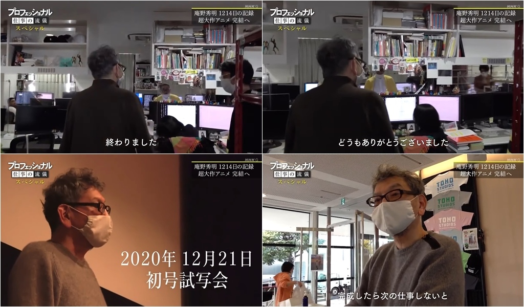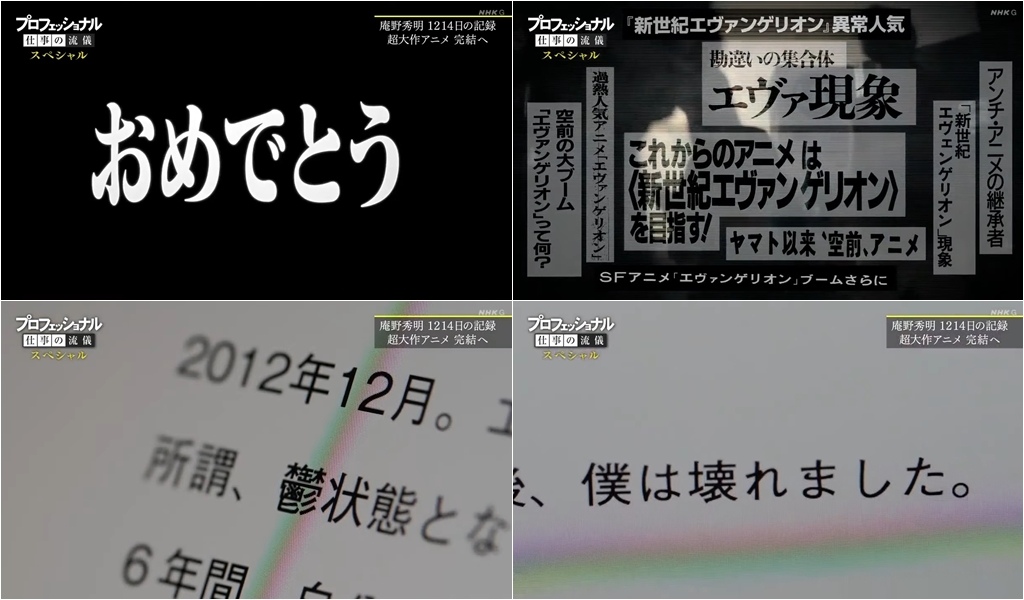 紀錄片節目「再見了,所有的福音戰士~庵野秀明的 1214 日~(さようなら全てのエヴァンゲリオン~庵野秀明の1214日~)」將於 4/29 於 NHK BS1 播出,前半段從日本時間 20 點~20:50,後半段從日本時間 21 點~21:50,總共一百分鐘的節目,讓大家可以更了解庵野導演與他製作《新‧福音戰士劇場版》背後的故事。