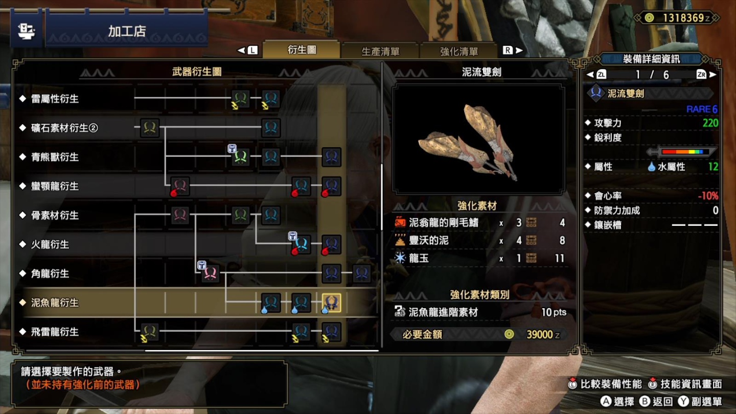 因為泥魚龍雙劍也可以出悔恨一擊,所以如果泥魚龍雙劍要出悔恨一擊,那除了備選那邊的火屬性強化要改水屬性強化以外,其他全部都可以照套蠻顎雙劍的配置,複製貼上也沒問題的那種。
