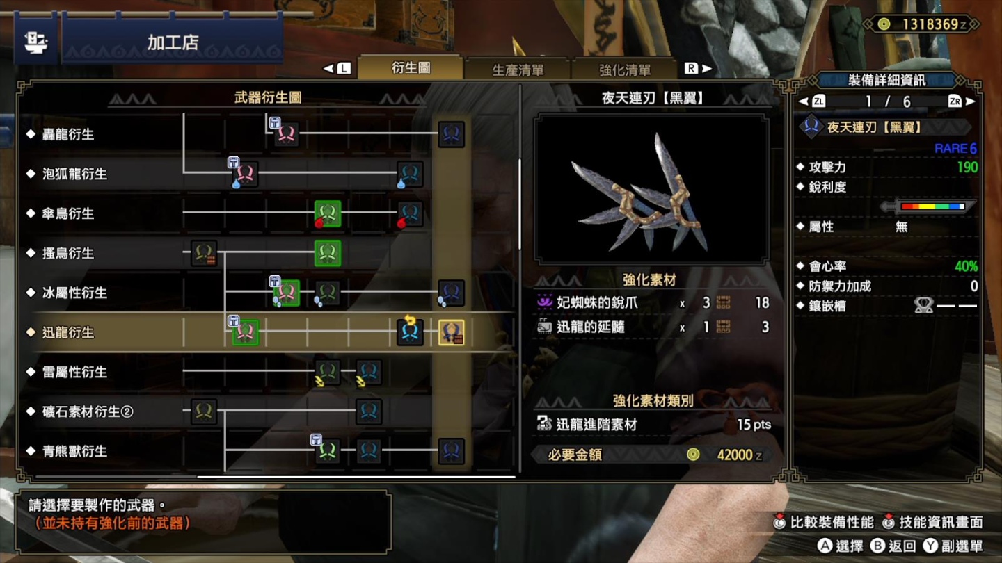 雖然迅龍稀有素材也是多少要看一點人品,但如果再考量到夜天連刃可以直接高度兼用其他武器的爆擊裝備,而導致你幾乎根本不用額外支出防具開銷的優勢,那這把已經不是一分錢一分貨的等級而已,而是如假包換的物超所值