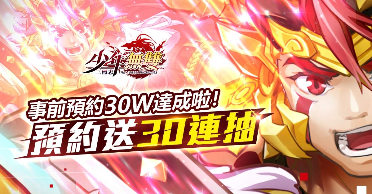 官方表示,《三國志‧少年無雙》事前預約人數正式突破終極目標 - 30 萬人,目前已成功解鎖全部大獎。遊戲開服後七天內登錄將獲得武魂*200、進階丹*100 以及 S 級神將「甄姬」等豐厚預約獎勵。歡迎玩家們前往官方粉絲團或雙平臺商店進行預約,獲取更多加碼獎勵。