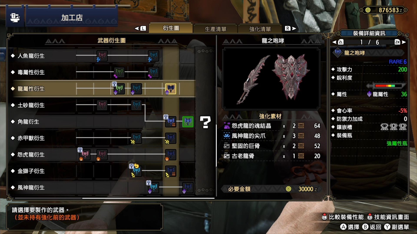 因應前期的首領怪現在在一般任務也可以開打,不用去拚那個每場都要十幾二十分鐘的百龍夜行,所以現在百龍武器在製作上的時間成本就是直接大跳水,算是相當的物超所值,又可以配合你的喜好改武器配色,真的優,作作作作作。