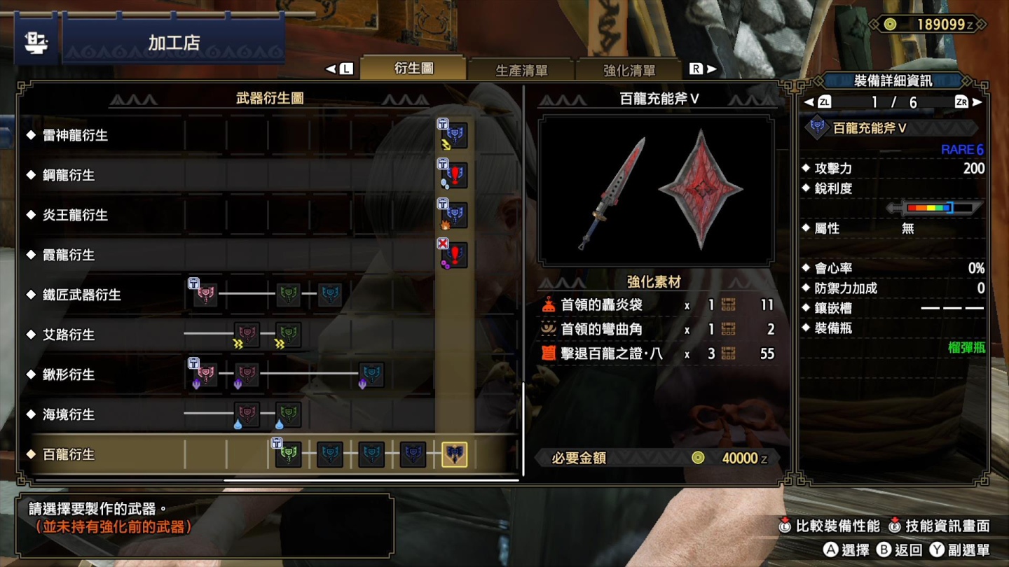 2.0更新之後,百龍盾斧的改造上限又提高了,現在全堆物理攻擊力和無屬性強化,攻擊力可以來到238,是目前全盾斧之冠。而且有著不錯的綠斬,所以同樣支援鈍器技能,也就是除非你想凹普攻的冰傷害、雷傷害、不然百龍盾斧確實是這個版本榴彈瓶傷害最高的盾斧。如果你是要想玩攻擊力238的超解盾斧,這把的配裝完全和雪鬼獸盾斧和金獅盾斧一樣,直接拉到最上面去看就可以了